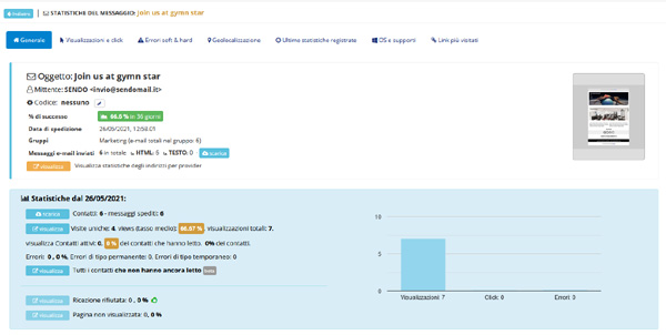 Se disponibili, le statistiche di dettaglio dell'invio sono accessibili dall'icona Visualizza statistiche.