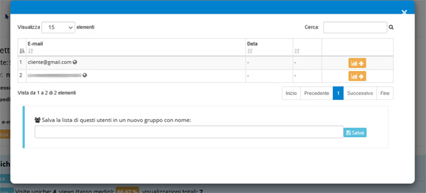 Mostra i contatti che hanno cliccato sul link per la visualizzazione da web del messaggio.