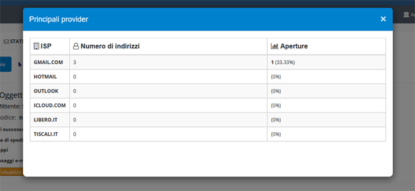 Indica la suddivisione dei contatti ai quali è stato effettuato l'invio tra i principali provider esistenti